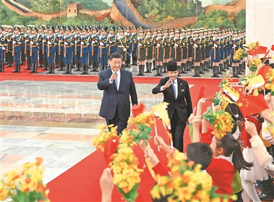 会谈前,习近平在人民大会堂北大厅为哈桑纳尔举行欢迎仪式。
