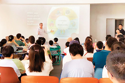 约翰·斯坎伦在北京为社区居民做生物多样性保护主题讲座。 |