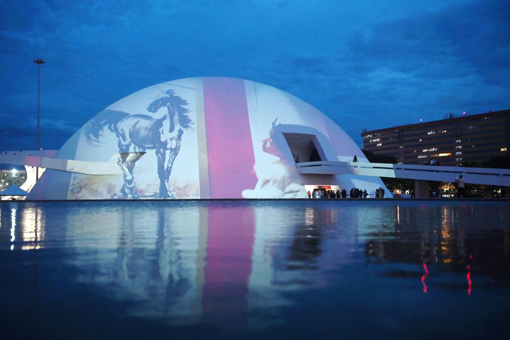 2月10日,巴西首都巴西利亚举行春节庆祝活动,通过灯光秀、武术表演、书法展示等活动喜迎马年新春。新华社发(卢西奥·塔沃拉摄)