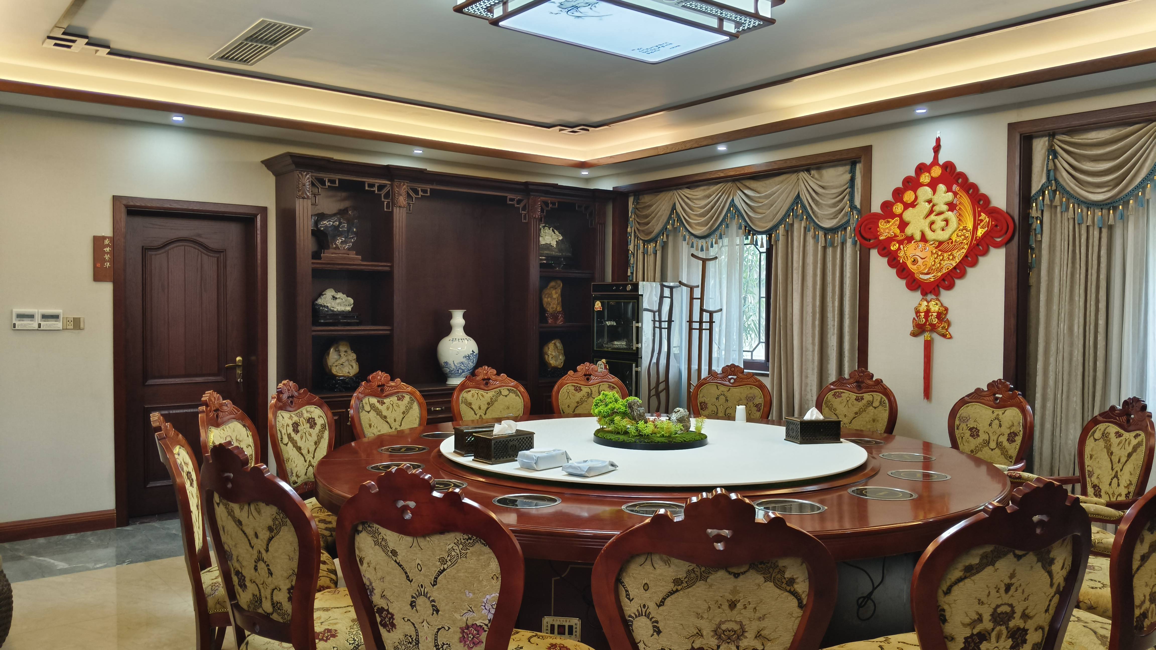 餐厅更是尽显不凡格调,高端大气上档次。宽敞明亮的空间,精致考究的装修,每一处细节皆雕琢着高雅品味。凭窗而望,庭院美景尽收眼底,与室内的精美装饰相互呼应,营造出“曲径通幽处,禅房花木深”般静谧惬意的用餐氛围。于此用餐,佳肴美馔不仅满足味蕾,更在这优雅环境烘托下,让用餐过程仿若一场奢华的文化盛宴,尽享磅礴气势,回味悠长。