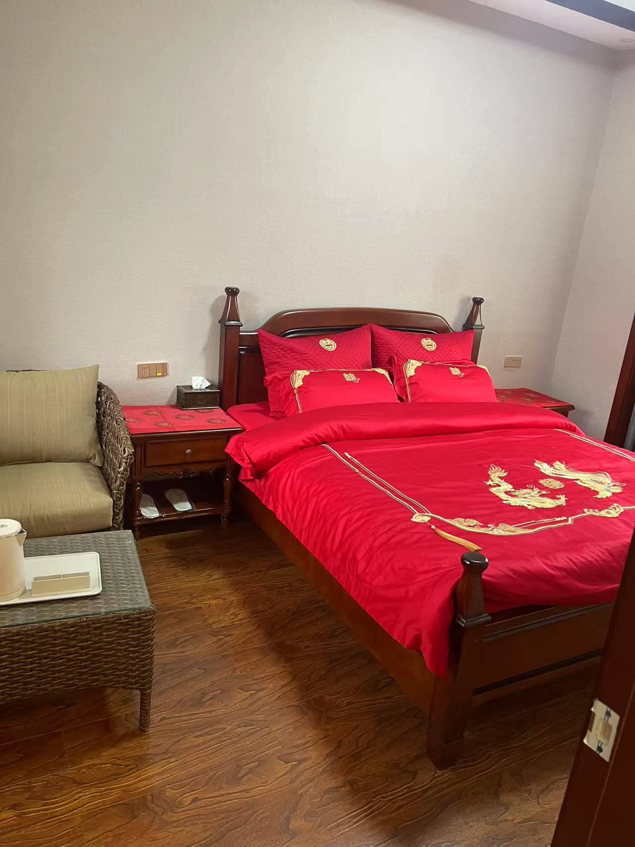 步入院内,铺设的大理石台面平整光滑,在暖阳映照下,泛出温润光泽,恰似一方温润美玉,与周遭建筑相映成趣,为整个院子添了几分典雅脱俗之气。房间布置更是精妙绝伦,将仿古与现代文化气息水乳交融。木质门窗、古朴摆件,仿若诉说着“从前慢”的旧时光,保留着古韵悠长;而柔软舒适的床铺、一应俱全的现代化设施,又确保您能畅享便捷舒适,仿若置身于古今交融的梦幻之境,华贵不失温馨,令您仿若穿越时空,却仍紧握现代生活的便利。